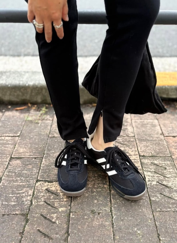 「1970年代のランニングシューズをベースに、アッパーからソールまですべてをブラックで統一することで、洗練されたデザインに仕上げた『SL 72』。クラシックとモダンが共存する1足で、カジュアルからキレイ目スタイルまでどんなスタイリングにもフィットするため重宝します」スニーカー¥14,300(adidas Originals for SHIPS/シップス インフォメーションセンター)