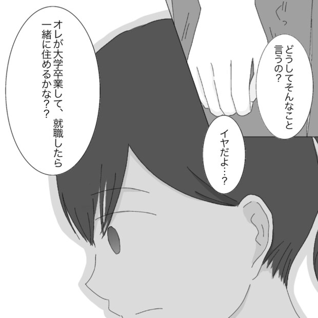 「どうしてそんなこと言うの?イヤだよ・・・?」私は消え入りそうな声で伝えます。私が一緒にいたいのはレンだけ。それ以外の人なんて考えられない・・・。すると、レンの口から「オレが大学卒業して就職したら、一緒に住めるかな?」という言葉が。
