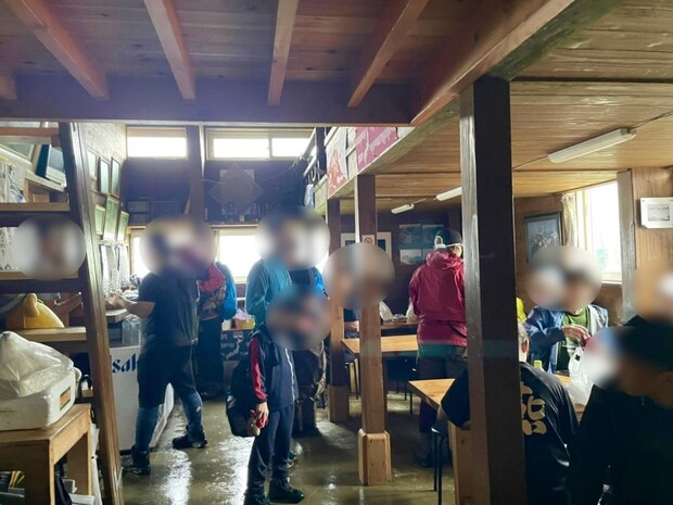 肩の小屋は冬期をのぞいて管理人さんが常駐していて、あたたかい食べ物やドリンク、登山バッチやTシャツなども販売されています。
