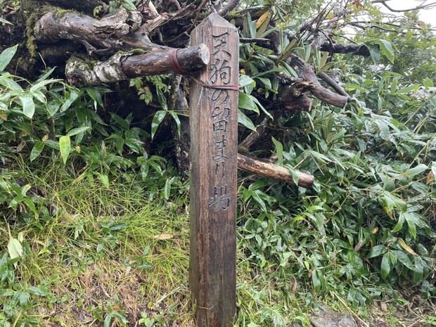 急な岩場やクサリ場を登っていくと、天狗の留まり場という展望の良い岩場が出てきます。