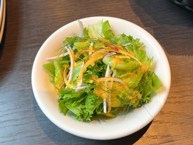 サラダは単品(税込220円)でも注文可能。オシャレなハーブが散っているシティなお味。