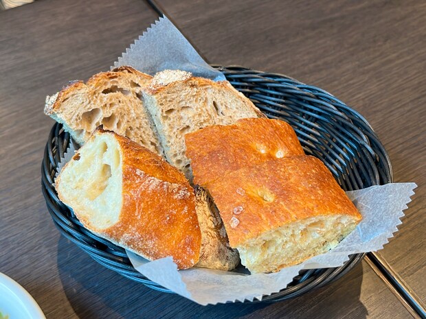 食べ放題のパンは「バゲット」「フォカッチャ」「カンパーニュ」の3種類。最初は1人1切れずつ提供されます。