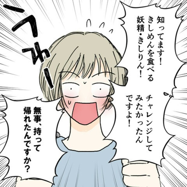 「きしりんチャレンジ」とは、形の崩れやすいお土産「きしりん」を、崩さないように持って帰るチャレンジのこと。S葉さんもやってみたかったと言い、チャレンジが成功したのか気になっています。