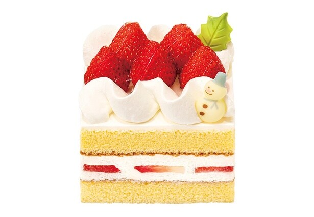 クリーミーなコクときめ細かな口どけの本格的なショートケーキ。真っ赤ないちごの森とふんわりミルキーな雪景色で、中にもいちごをサンドし、いちごのおいしさをぎゅっとつめこんでいる。