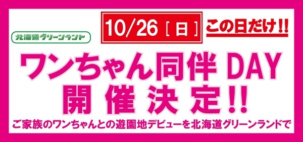 北海道グリーンランド遊園地は、10月26日(日)に「ワンちゃん同伴遊園地イベント」を開催する。