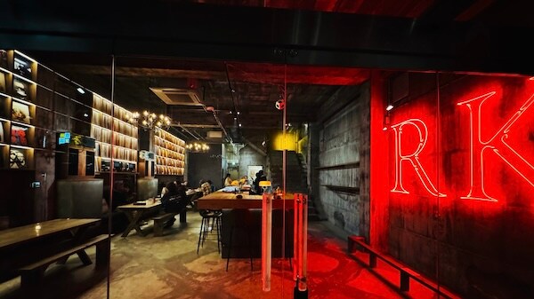 RKのネオンが輝く1階のレストラン「RK by lalu」。料理を手がけるのは、高崎で人気を博した「RK LOOF」のスピリットを受け継ぐ「lalu」のメンバーだ。
