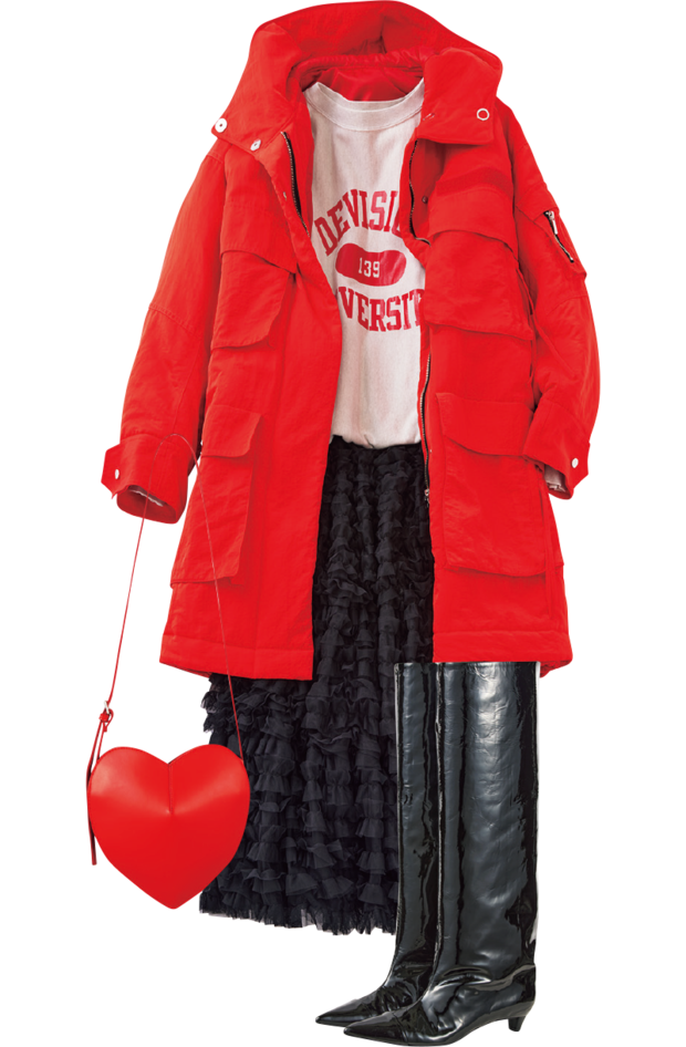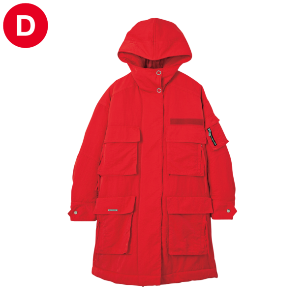PRANK PROJECT ナイロンコート BIGポケットが特徴的なナイロンコートは、中綿入りで防寒対策にもバッチリ。鮮やかな赤と、程よくスポーティなデザインが今っぽくて最高。コート¥44,000(プランクプロジェクト/プランクプロジェクト 青山店)
