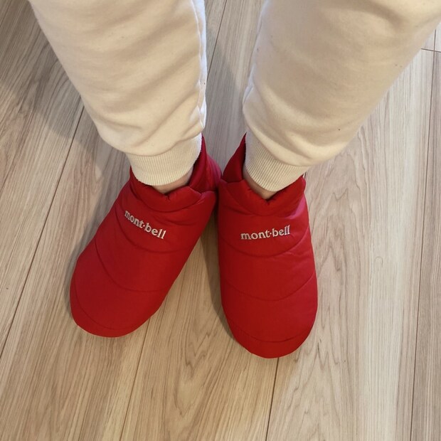 この冬買って本当によかったと思っているのがこちら、モンベルのキャンプシューズです。屋内用防寒キャンプシューズなのですが、保温・撥水・速乾に優れた中綿を使用していて、まるでダウンジャケットのようにふわっふわ。底面はすべりにくく耐久性に優れた合成皮革で、ウレタンフォームが挿入されているのも冷えにくい理由なのだとか。はき口が狭めになっていて足首から冷気が入ってくることなく、裸足ではいてもかなりの温かさ。あと、はいているのを忘れるくらい軽いんです。ちなみに自宅でも手洗い可能で、清潔に保てるところもポイント高い! ブラック、ブラウン、ネイビー、レッドの4色展開で、私は赤をセレクト。気に入り過ぎてもう手離せません。