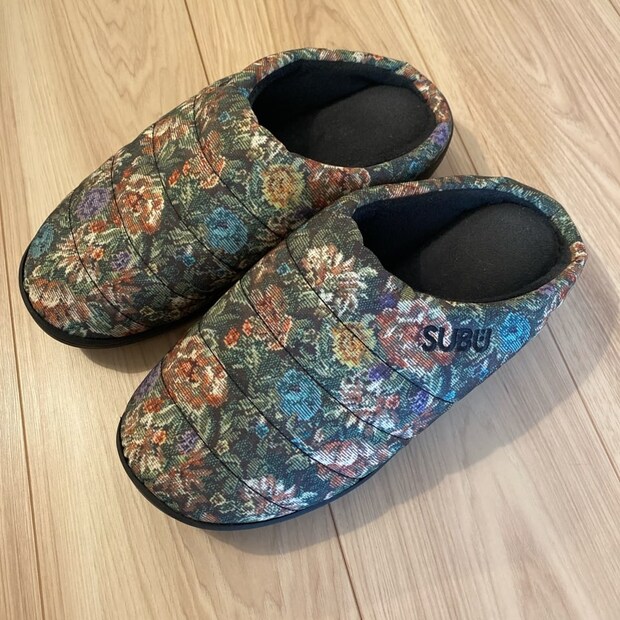 キャンパーの秋冬サンダルとして人気を集める「SUBU(スブ)」。趣味のキャンプシーンで使えそう、と購入したのですが、試しに家ではいていたら気に入り過ぎていつの間にかルームシューズと化してしまったこちら。内側にふわふわとした起毛素材が使われて、足を入れたときに温かく包み込まれるような感覚がヤミツキに! アッパーはふかふかの中綿に厚みのあるキルティング素材で、まるでダウンのような保温性があります。秋冬用というだけあって、温かさは本物。しっかりめのソールも重くなく、低反発クッションのように足の形に合わせてインソールが沈み込み、まるでマットレスの上を歩いているかのような心地よさです(そしてすべりにくい!)。スリッポンタイプは脱ぎはきしやすいのも魅力的。お風呂上りにサッとはいたり、トイレではきかえやすかったりストレスなし。柄やカラバリも豊富で、お気に入りを探すのも楽しいです。