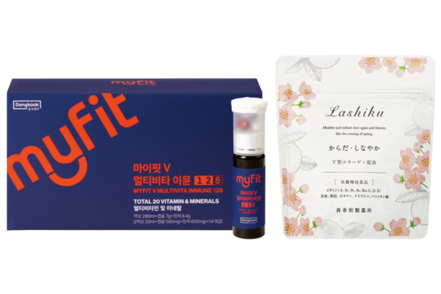 左から:韓国でブームのカプセル、錠剤、リキッドがひとつになった高栄養タイプ。BからEのほか、ビタミンDやK、各種ミネラルもたっぷりIN! MY FIT V マルチビタイミューン128〈液体20mL+錠剤+カプセルのセット〉14本 ¥4,950(東国製薬・9月下旬発売予定)、12種のビタミンとコラーゲンペプチドをひとつにしたトローチタイプ。Lashiku からだ・しなやか [栄養機能食品] 60粒 ¥5,400(再春館製薬)