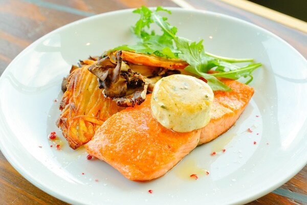 脂がのった信州サーモンを香ばしく焼き上げ、コク深いアンチョビバターを添えた「信州サーモンソテー アンチョビバター添え」2,600円(税込)が新たに登場。