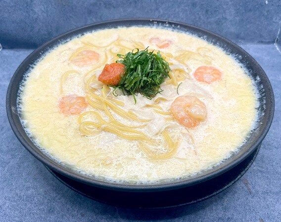 「海老と明太子のクリームスープスパゲッティ」1,850円は、まろやかなクリームスープに肉厚な海老とピリッと辛い明太子を合わせており、濃厚ながらも軽やかな味わいが特徴だ。