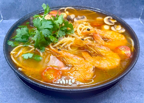 「トムヤムクンスープスパゲッティ」1,750円は、スパイシーで爽やかなアジアの味わい「トムヤムスープ」にプリプリのエビの風味が溶け込み、パクチーのトッピングが効いた一品。