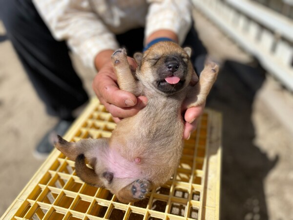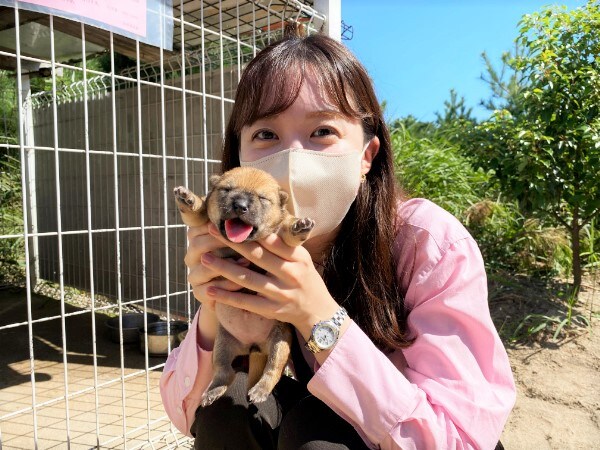 そーっと触らせていただくと、子犬ということもあり毛がふわふわっ。手に温かさを感じて、小さな命が誕生する尊さを感じました。