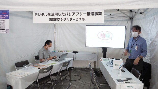 2025年に東京で開催される聴覚障がい者のための国際スポーツ大会「デフリンピック」のPRブース。デジタル技術を活用した情報保障の取り組みなども紹介されています。