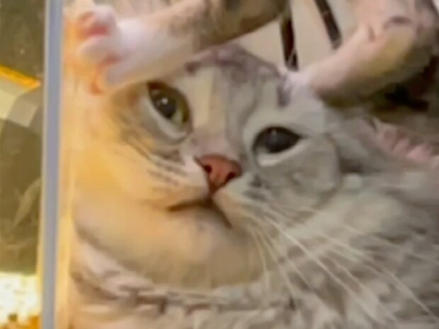 いきなり顔を踏まれた先輩猫さんは