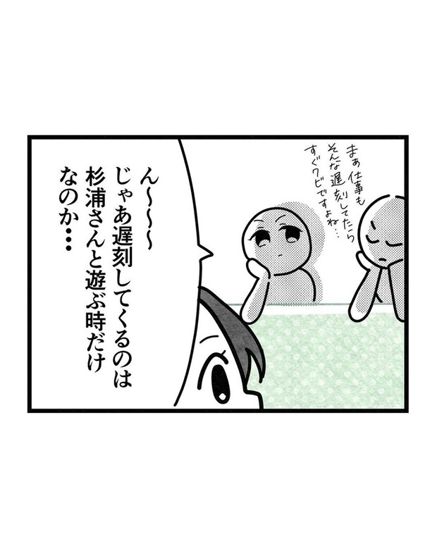 ふうかさんが遅刻してくるのは、さほさんと遊ぶ日だけ。休みの前日は夜更かししたい気持ちも分かるけど遅刻はいけないと後輩は言います。