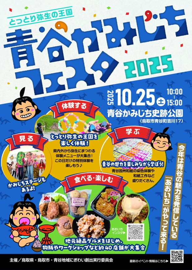 10月25日(土)は、弥生人の再現で話題を呼んだ「青谷上寺地(あおやかみじち)遺跡」を舞台に、古代体験や地元グルメが大集合するイベントが開催!