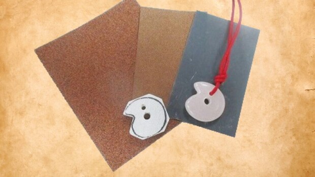 島根県からは、古代から伝わる勾玉作り!出雲でしか見られない珍しい形のまが玉を、石を磨いて作ります。