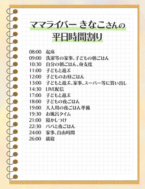 「卒乳して間も無いので、なかなか思い通りのルーティンにはならない毎日です」と、明るく語るきなこさん。ライブ配信も固定ではなく、娘ちゃんのお昼寝中など空いた時間を活用しているとのことですが、どうやって毎日をやりくりしているのか、詳しく深掘りしていきます!