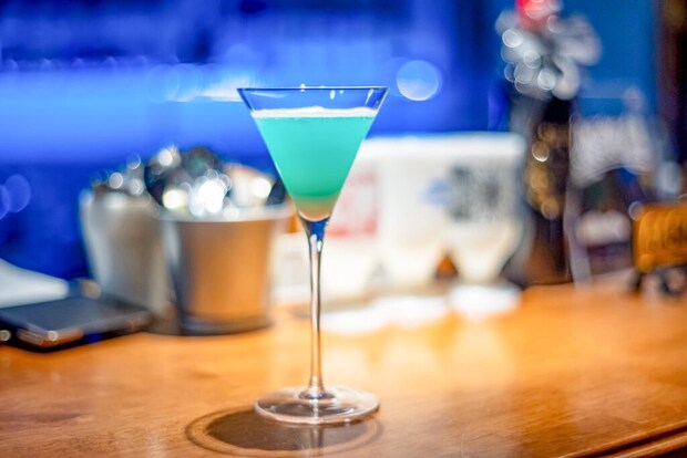 雪に彩られた大山をイメージした日本酒ベースのカクテルで、キレイな水色に目を引かれます♪