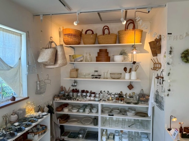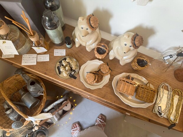 お店の人気アイテムは、アンティーク風のプレートやムゲットさんのキーホルダー、そして“かごもの”など。