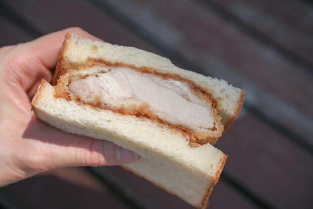 薄めにカットされた食パンがカツにそっと寄り添って、美味しさを引き立てています。