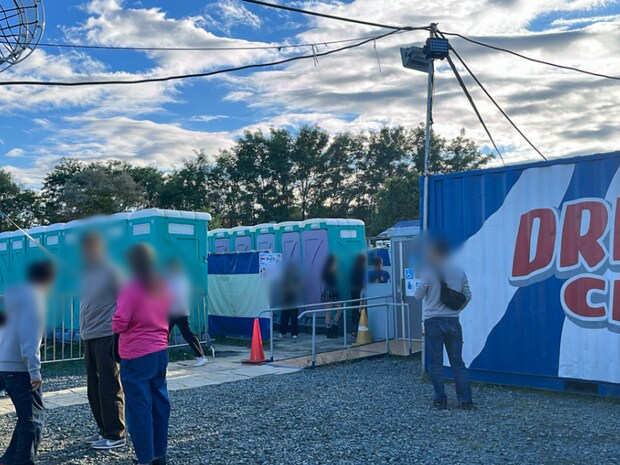 トイレは入場後にあります。仮設トイレなので盛岡駅でお手洗いは必須。