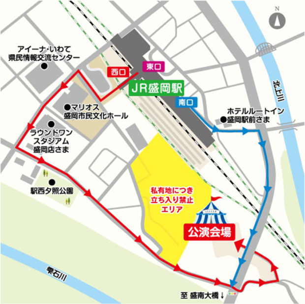 車は激混みなので、盛岡駅から徒歩がオススメ!