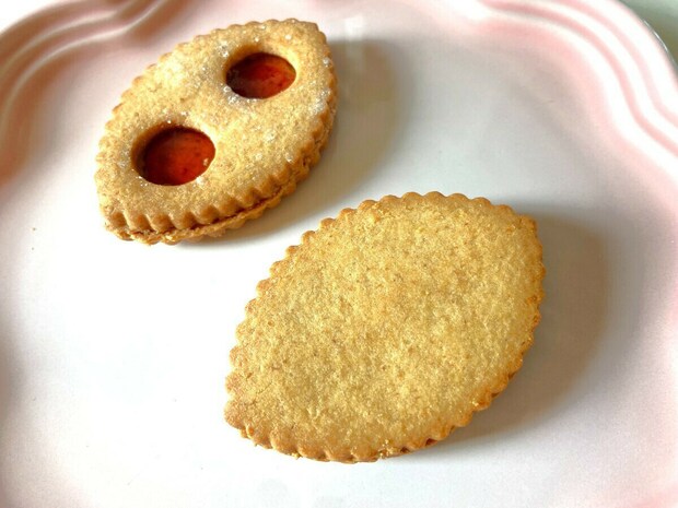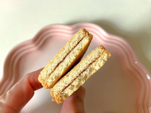 横から見てみると、どうやらクッキーが2枚重なっている模様。その間にストロベリージャムがサンドされています。