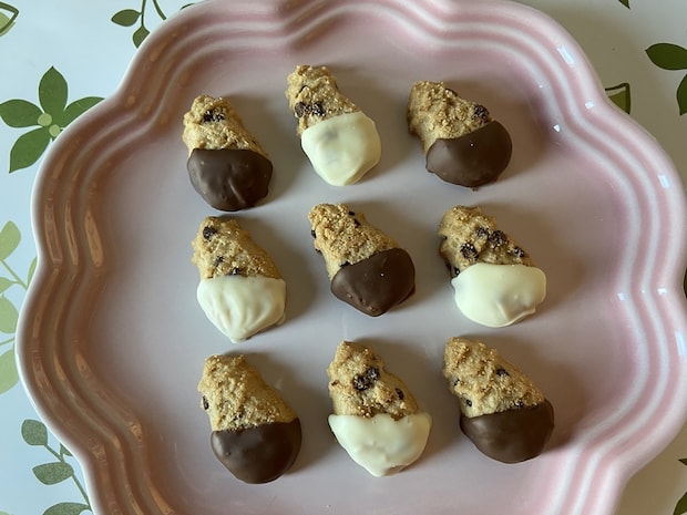 アレンジとして、クッキーにミルクチョコとホワイトチョコをコーティングしてみました。ホノルルクッキーでもよく見かけるコーティングですよね!