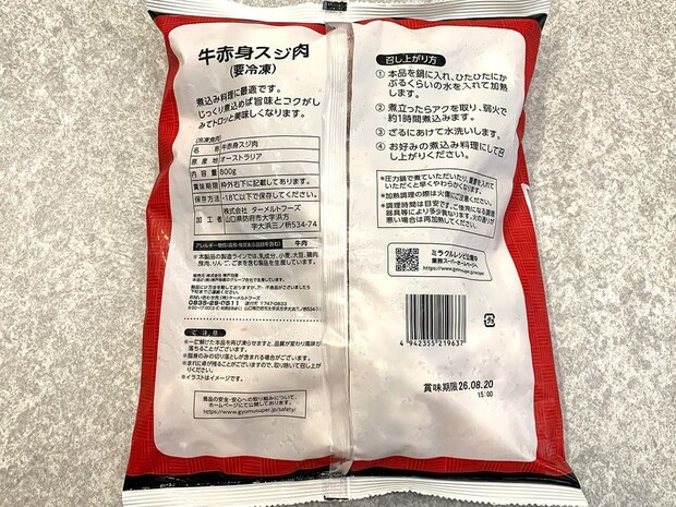 赤身と脂身のバランスがほど良い「牛赤身スジ肉」をご紹介します。