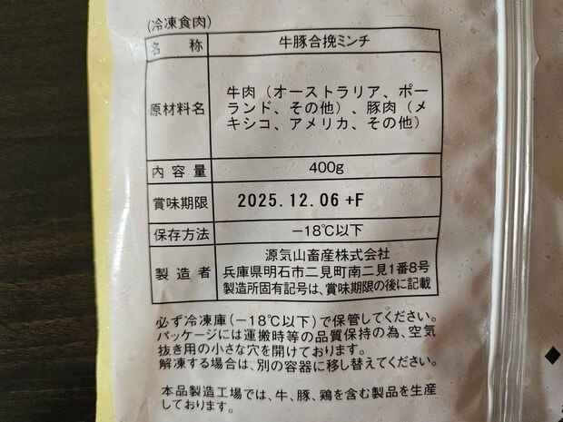 内容量は400gで価格は483円(税込)、100gあたりで見ると約120円です。近所のスーパーで購入したチルドの合い挽き肉は100gあたり198円でしたので、本品は非常にお買い得ですね♪