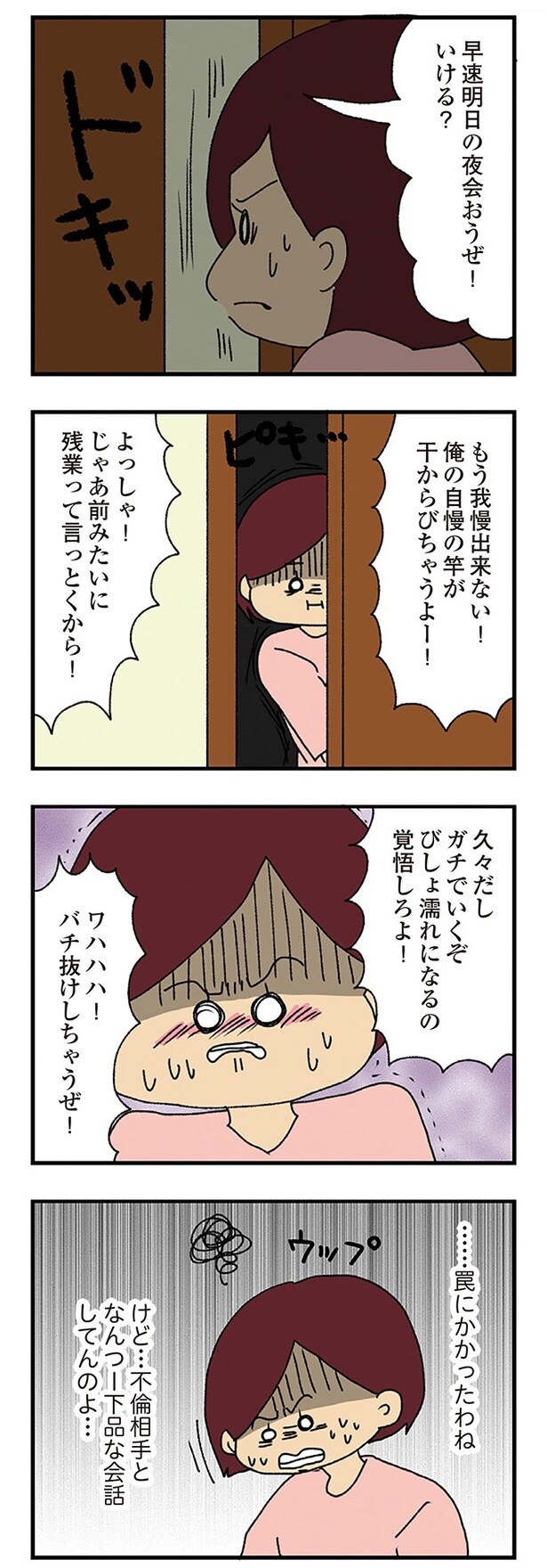 夫の不倫相手は誰?そして、その目的は?伏線だらけの不倫ミステリー「ママ友4人の誰かが夫と不倫している」 (漫画:ぱん田ぱん太)から全25回連載でお届け。今回は第14回目となる。