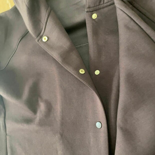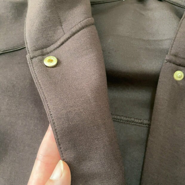 フロントはパチパチッと留めるだけのスナップボタンで、忙しい朝でもサッと羽織れてストレスなし!