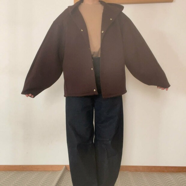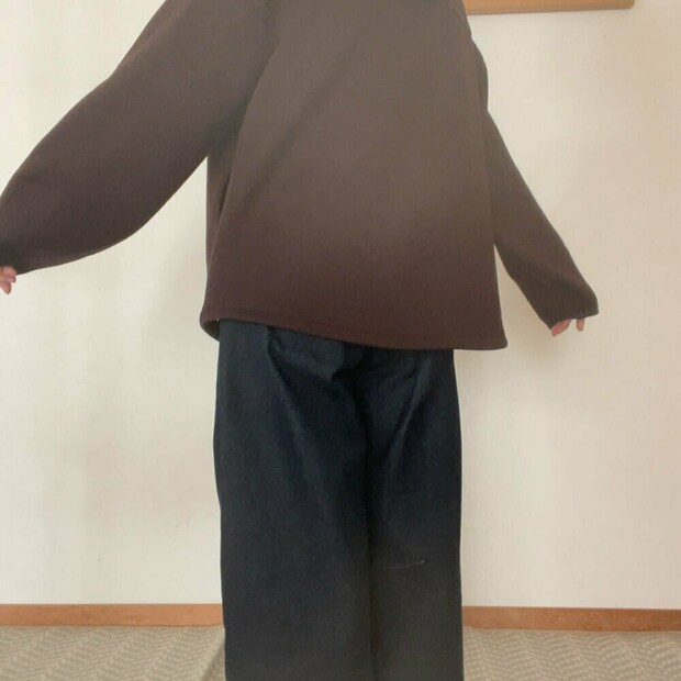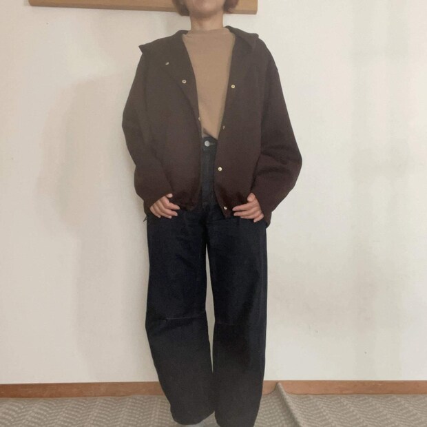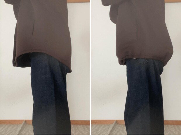 丈も長すぎず短すぎず、ちょうどいいバランス。153cmの筆者でお尻が隠れるくらいの丈感で、体型カバーにも◎。リラックス感のある着こなしを楽しめます。