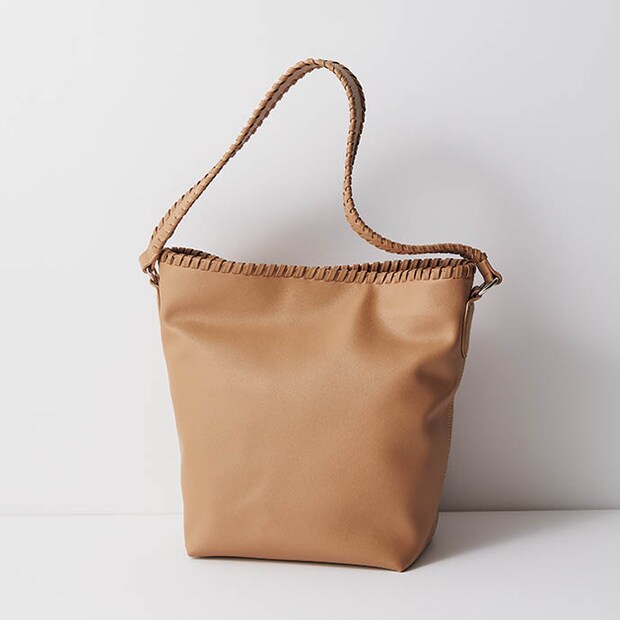 ブランド定番モデルのカーニバル。バケツ型で、上部が開いているので出し入れがしやすく使い勝手がいいのに、キレイ見えします。今年の新色は、ライトブラウン。バッグ[H35×W23×D22㎝]¥198,000(J&M デヴィッドソン/J&M デヴィッドソン カスタマーセンター)