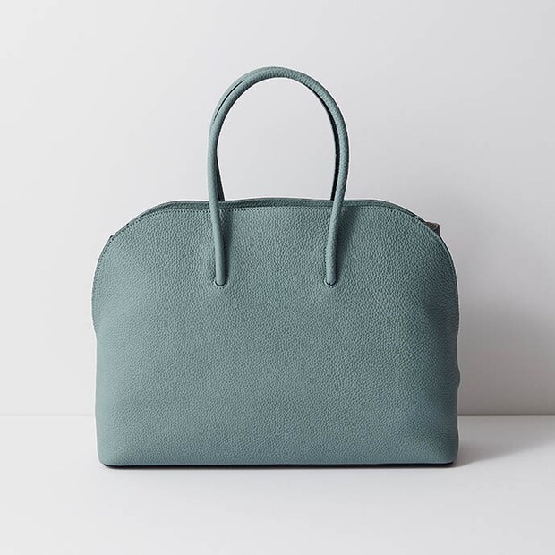 建築家とファッションスペシャリストという異色のユニットが生み出すバッグ。モダンなデザインとスペインの職人技が組み合わされたまさにタイムレスなアイテムは要注目です。バッグ[H33×W32×14㎝]¥79,200(MIUUR/ショールーム セッション)