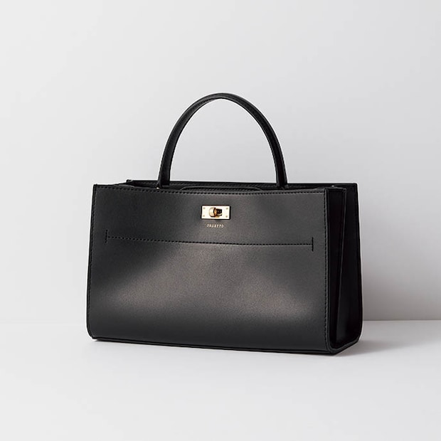 「学校行事にも最適な黒バッグ」国内ブランドで、スモールレザーグッズやPVCを使ったアイテムも充実。フロントのひねり金具がポイントのハンドバッグは、常に売り上げランキング上位に入る人気者です。バッグ[H19×W30×D12㎝]¥59,400(オルセット/ユナイテッドアローズ 丸の内店)