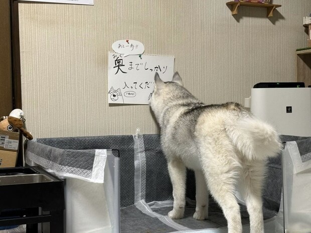 犬向けに貼り紙をしたら「まさかの熟読」驚くべき姿に4万いいね