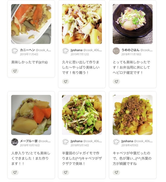 つくれぽ(つくりましたフォトレポートのこと)にも「キャベツのシャキシャキ食感が良くて美味しかったです」「ありそうでなかった!旨味があって、食感がよくて、美味でした」など、絶賛コメントがたくさん届いています。