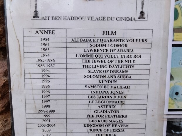 アイット・ベン・ハドゥは歴史的にも文化的にも重要な集落ですが、さらに映画やテレビドラマの撮影地としても世界的に有名です。「アラビアのロレンス」「グラディエーター」「キングダム・オブ・ヘブン」「スター・ウォーズ」「ソドムとゴモラ」「ハムナプトラ」「プリンス・オブ・ペルシャ」、そしてテレビドラマ「ゲーム・オブ・スローンズ」など、多くのハリウッド作品でロケ地として使用されました。
