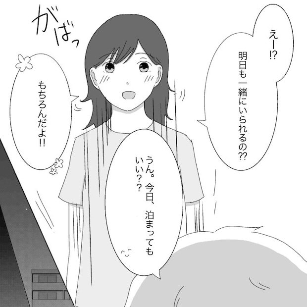 「えー!?明日も一緒にいられるの??」と驚いて言うと、「うん。今日、泊まってもいい??」とニッコリ笑顔で言うレンに、「もちろんだよ!!」と慌てて立ち上がりながらそう答えたのでした。