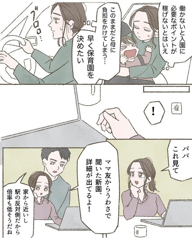 当初は実母の協力を得て働いていた彩乃でしたが、わんぱく盛りの子どもの相手は実母には大変なこと。悩んでいた時、ちょうど新園ができる情報を得ることができ、子どもを預けられる保育園を見つけられました。