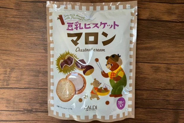 カルディの人気お菓子「豆乳ビスケット」のマロン味が登場です!秋らしい栗拾いのイラストがかわいいですよね♪