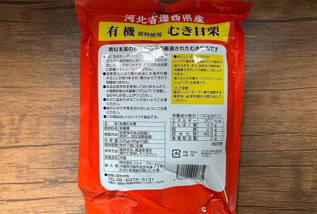商品名:ジェイ・ファーム 河北省遷西県産 有機原料使用むき甘栗