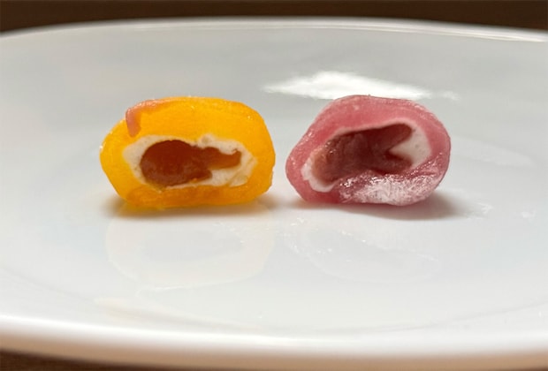 国産原料を用いたペーストを、マシュマロ、そして餅生地で包み込んだ、三層構造が特徴の、紫芋とかぼちゃの2種類の味を楽しめる餅の詰め合わせです。