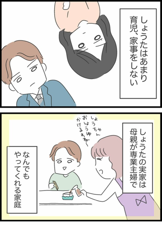 夫・しょうたの実家は母が専業主婦だったこともあり、言わなくてもなんでもやってくれる家庭だったそう。そのせいか、今現在も育児・家事を全くしないようです。