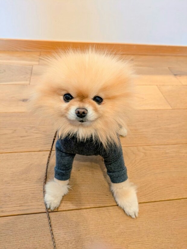 「キュ…ボンッ!」犬服にポメラニアンを通すと…驚きの姿に2.7万いいね