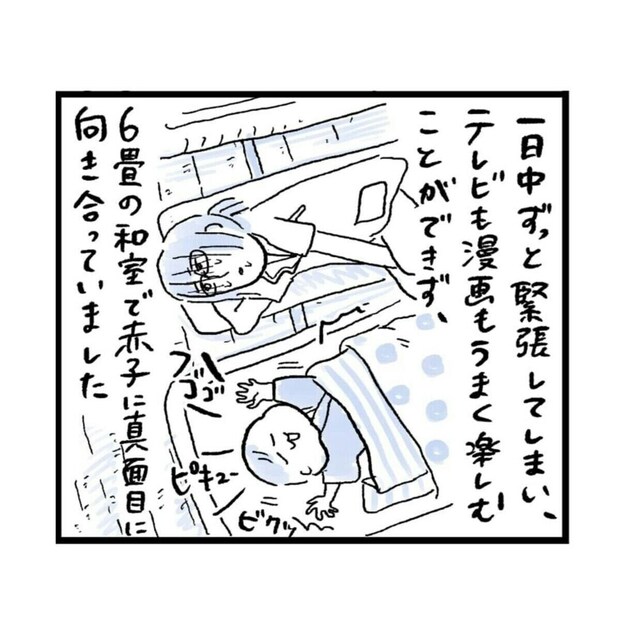 おやま@書籍発売中(@oyamaoyadayo)さんは、里帰り出産をしました。しかし、慣れない育児に疲労困ぱい。うまく親を頼ることもできないまま、趣味も楽しめずわが子につきっきりだったそうです。新生児期が過ぎれば楽になるはず、と自分を励まし不安な日々を過ごします。